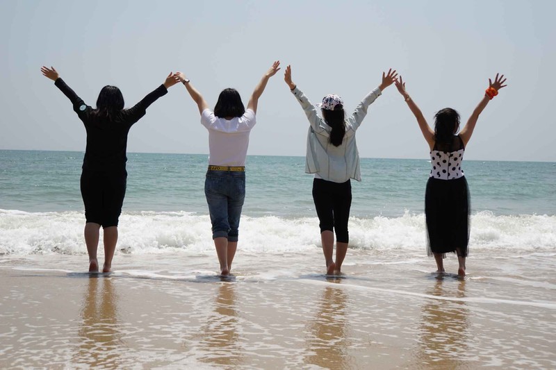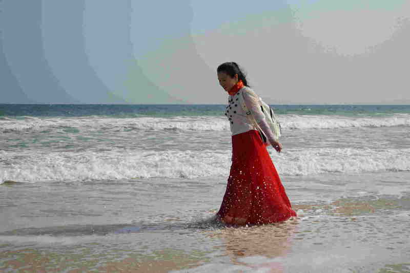吹着海风踏着海浪,赤足嬉笑于柔软干净的沙滩上,享受着冰凉的海水洁白的浪花俏皮的亲吻着脚丫。
