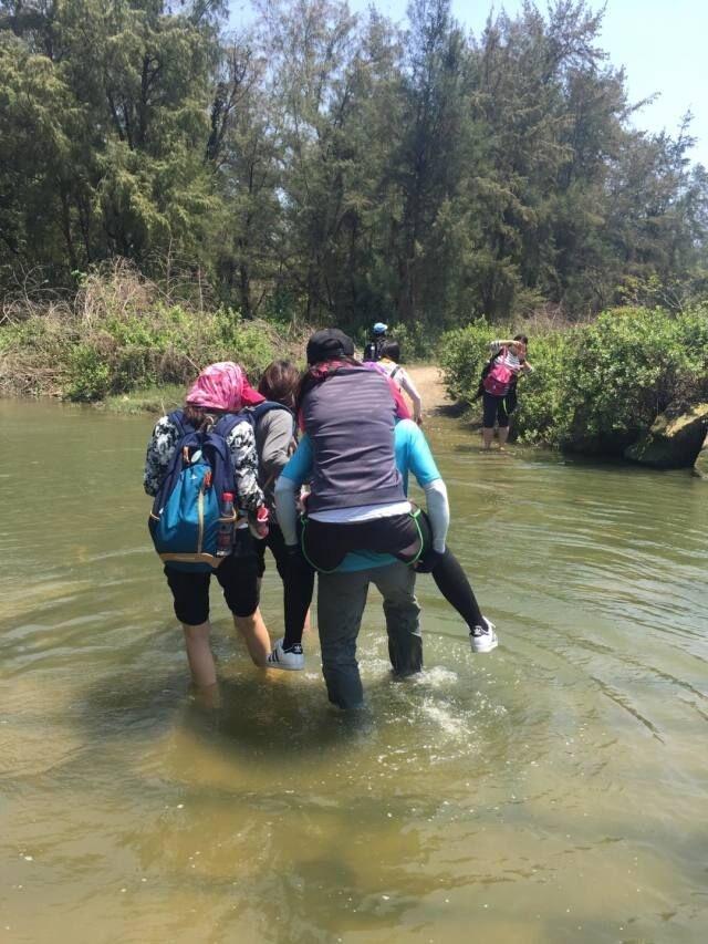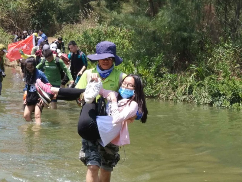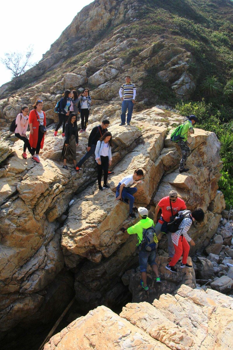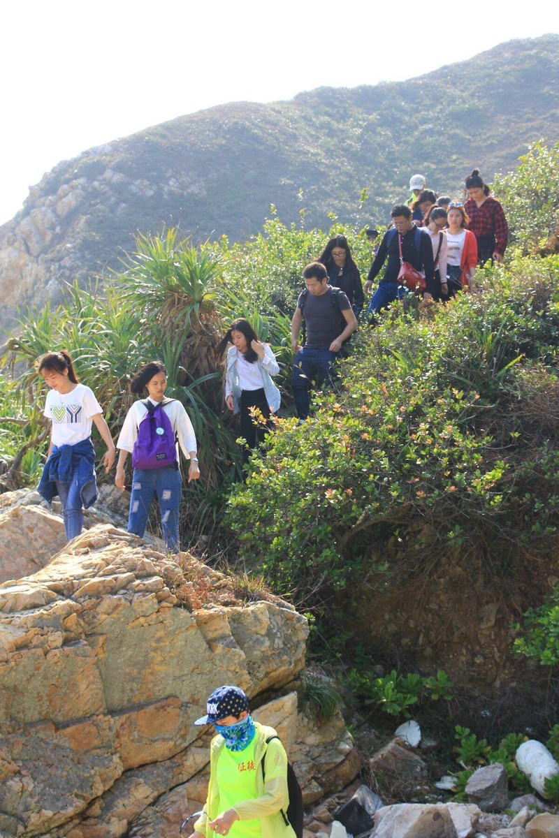 在穿越山头小丛林和在攀爬岸边嶙峋礁岩过程中,时常可见帅气的男生帮助娇柔的妹纸
