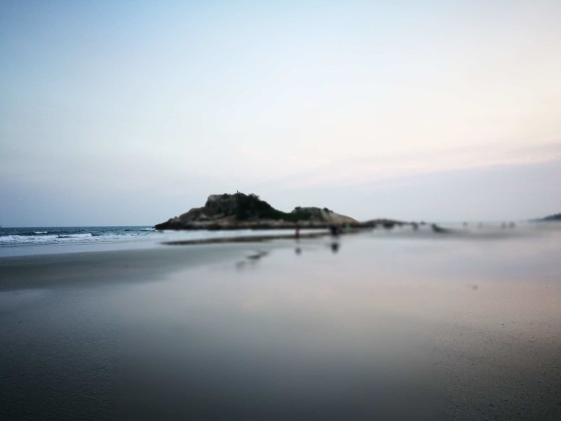 夕阳西下,海仿佛笼罩在薄如蝉翼的迷雾之中。傍晚下的狮子岛显得安宁祥和,散发着一股氤氲朦胧的气息