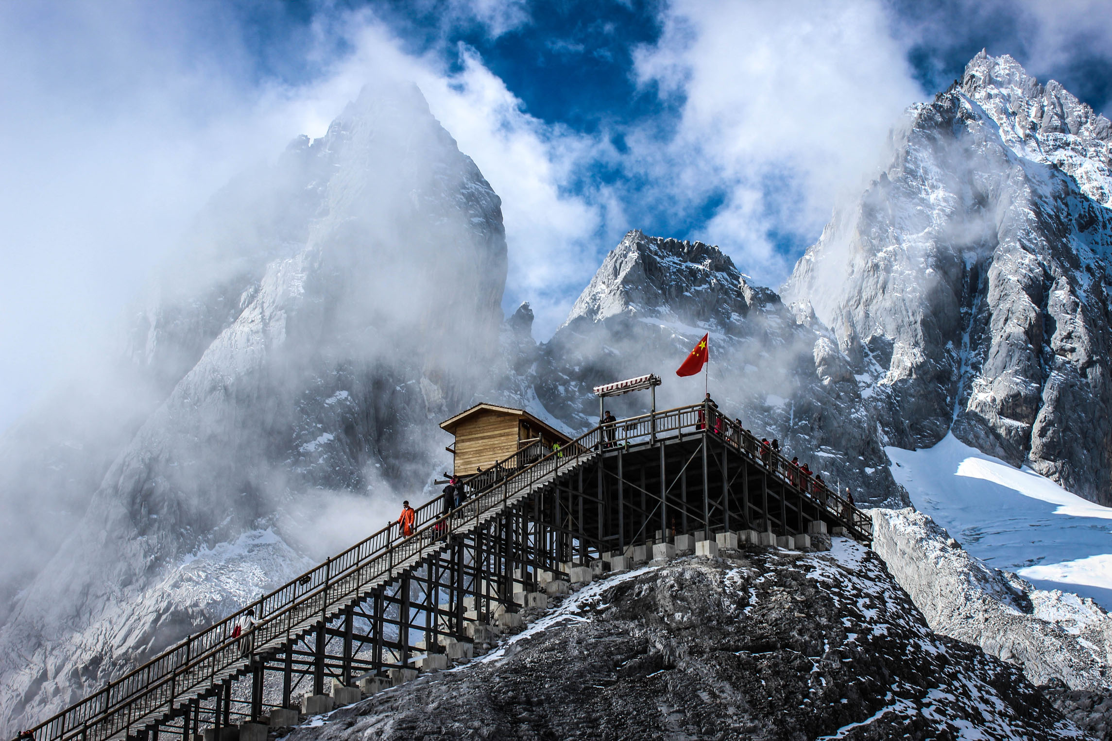 是玉龙雪山景区三条索道之一。冰川公园位于玉龙雪山景区内,是玉龙雪山的主峰扇子陡东北坡一片平缓坡地,这里秋冬春三季白雪茫茫,夏季可以看到形成的冰川,而且这里有索道相通,上山几乎没有难度,是近距离感受雪山魅力的好选择。山顶还有一处标示石碑,也是很多游客合影的热门地点。